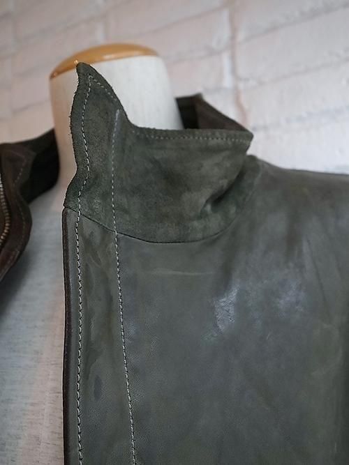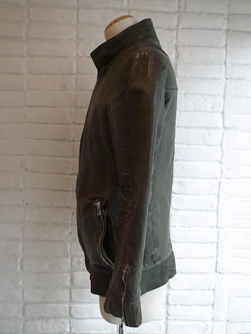 【incarnation/インカネーション】HORSE LEATHER BIAS ZIP RIB BLOUSON W/PKT LINED (OLIVE)